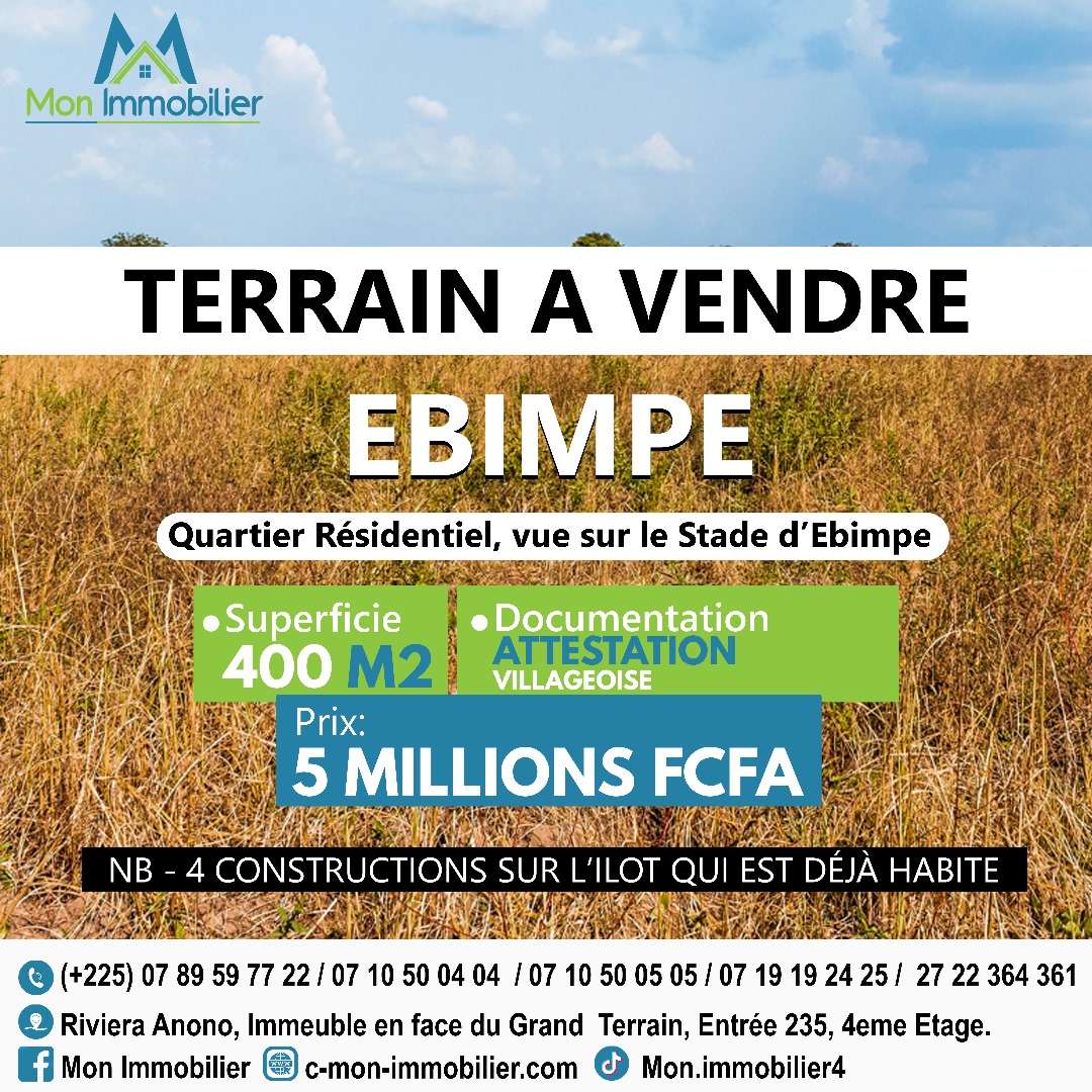 Ebimpe - terrains de 400m2 a vendre - Attestation Villageoise - 5 millions Fcfa