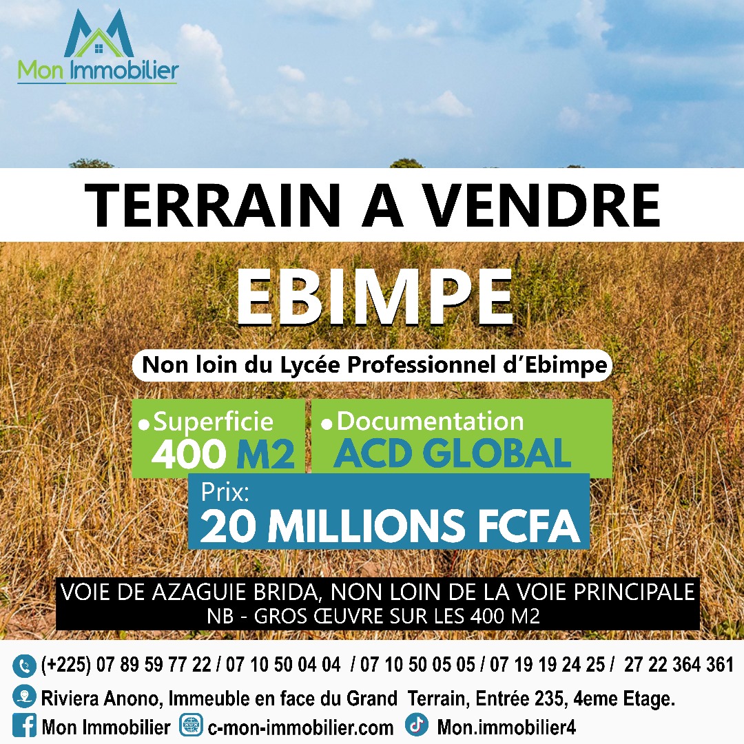 Ebimpe - terrains de 400m2 a vendre - Attestation Villageoise - 5 millions Fcfa